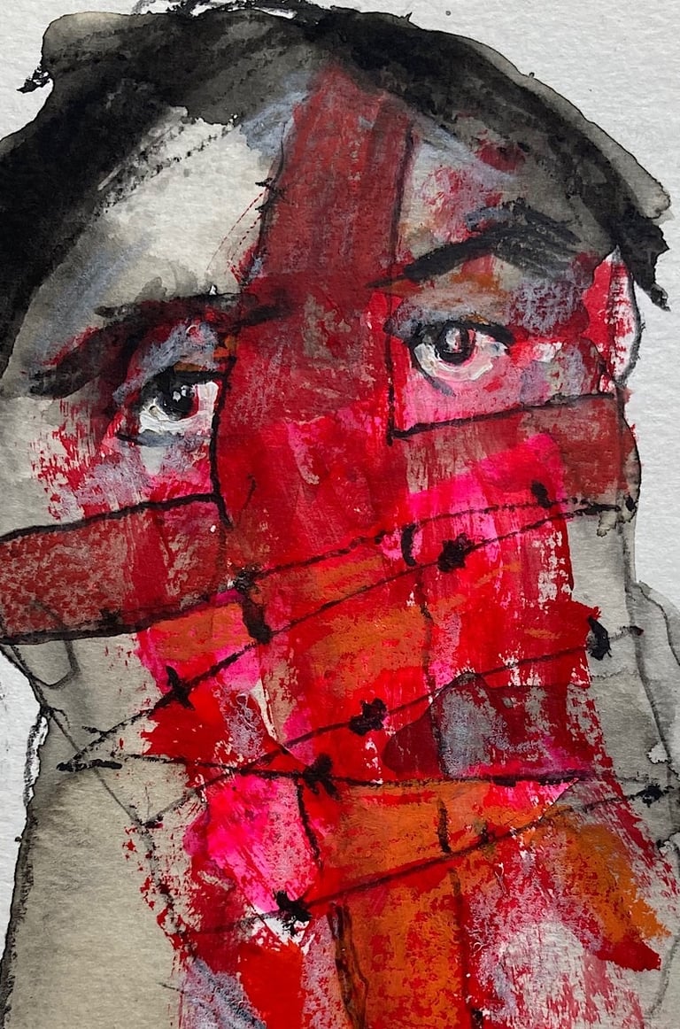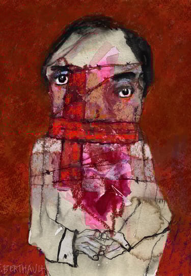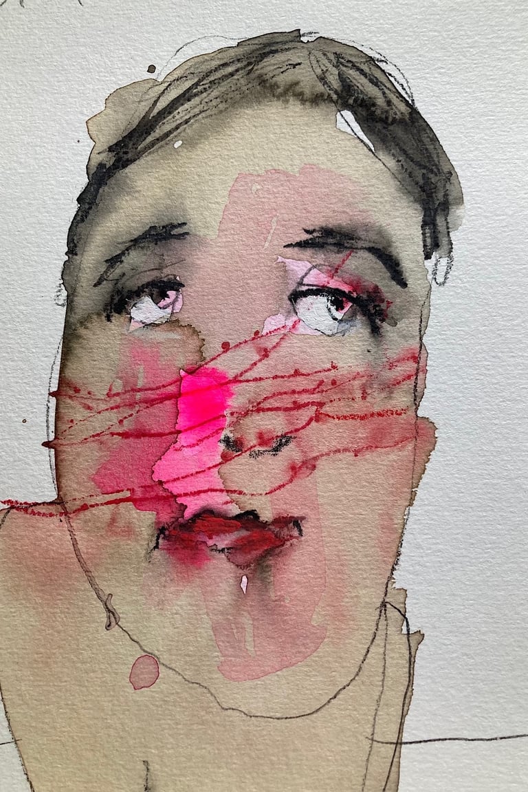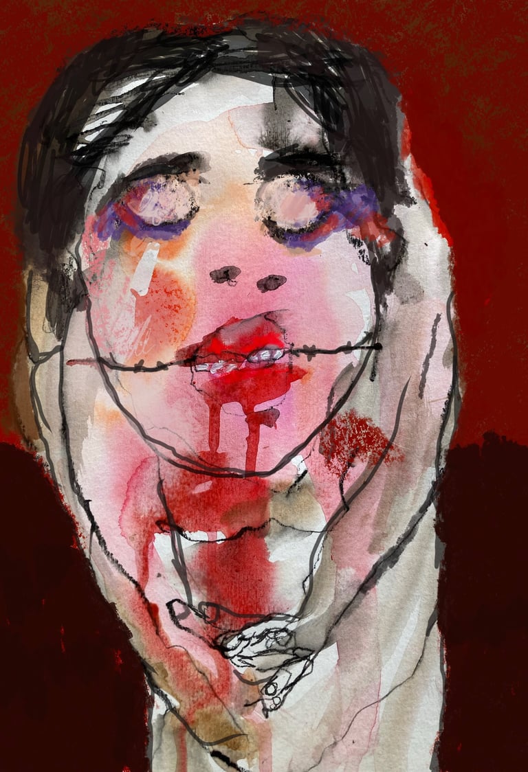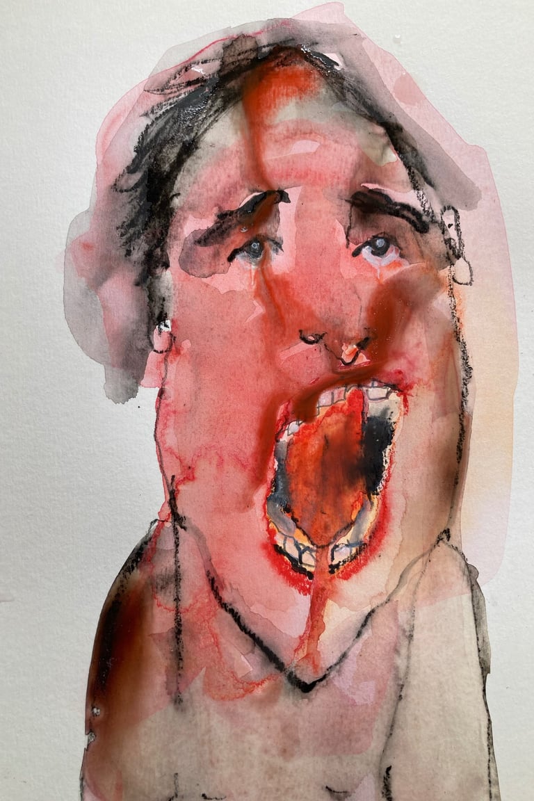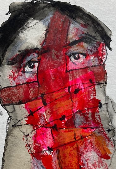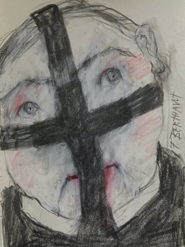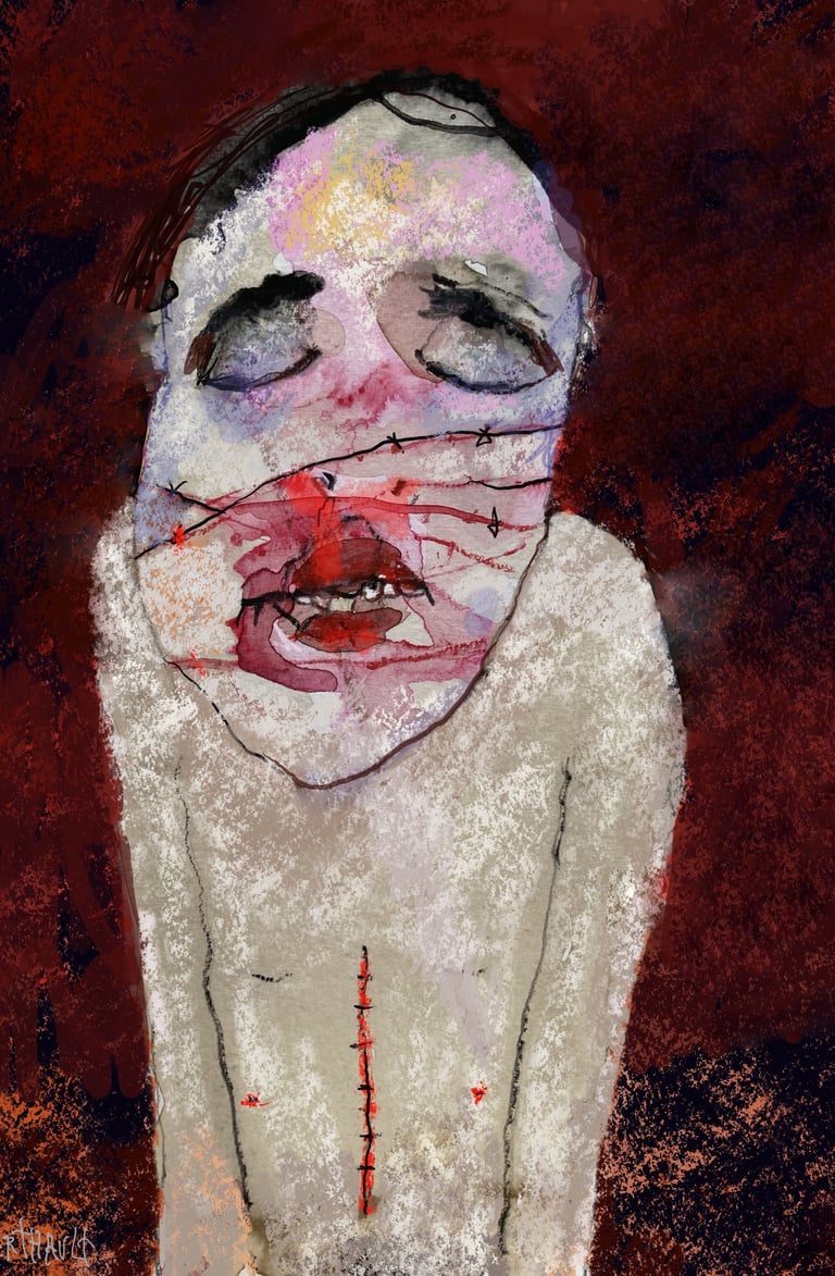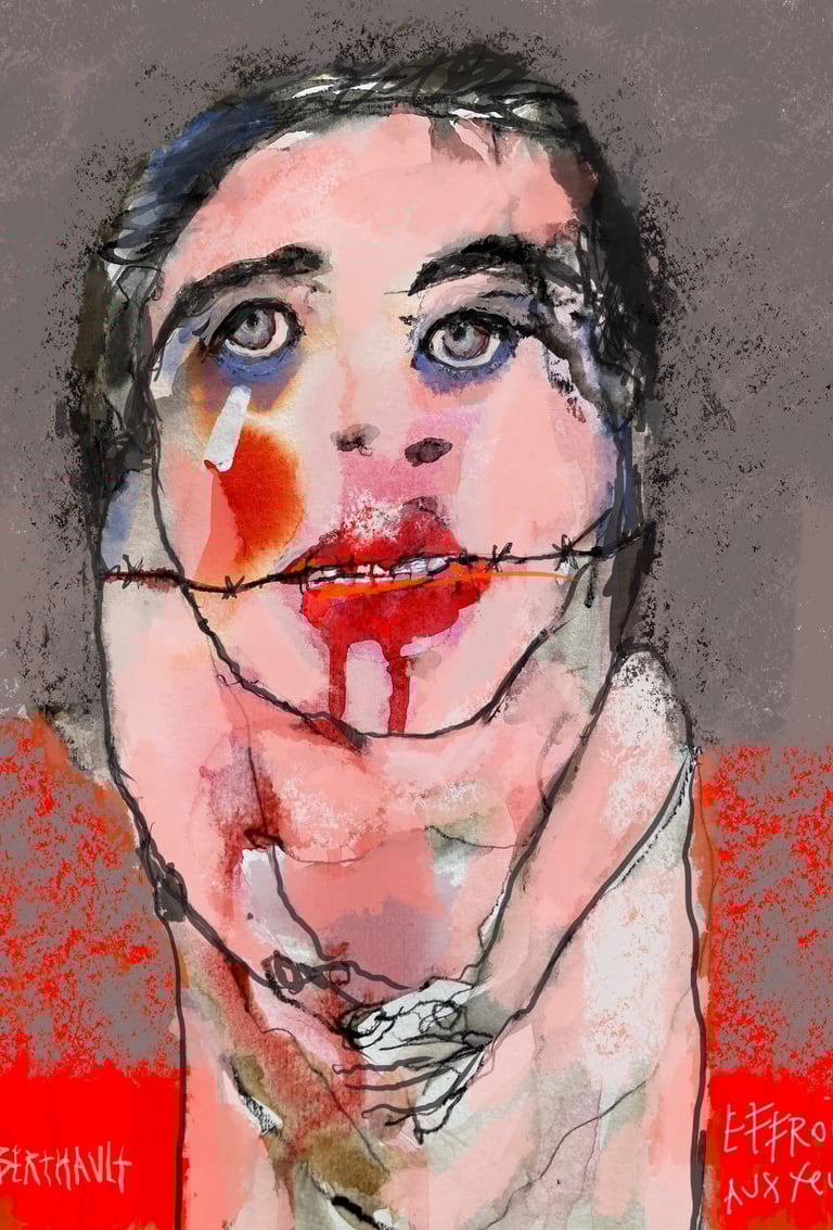 Ces regards, en souffrance qui nous dévisagent laissant aux bouches mutilées la question embarrassante du pourquoi moi. La nécessité de présenter ces peintures est d’ouvrir les yeux de ceux qui préfèrent détourner le regard. Ceux pour qui la protection des institution revêt plus d’importance que la vie des victimes Il s’agit de personnes pour qui la protection des victimes de violences sexuelles semble moins dérangeante que la mise en cause des institutions famille, église, sport, art, justice…